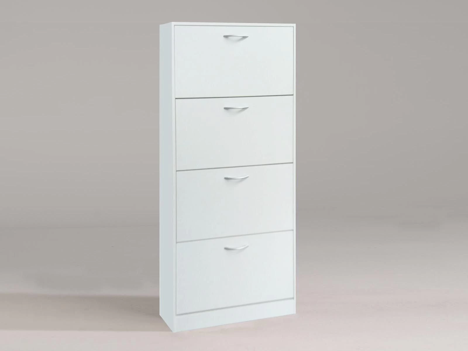 Schoenenkast Carini 4 laden, wit van kleur, vervaardigd uit spaanplaat.