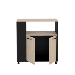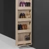 Schoenenkast Celestia 80x24x154cm uit spaanplaat met afwerking in eikdecor en zwart. Met vier opklapdeuren.