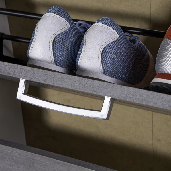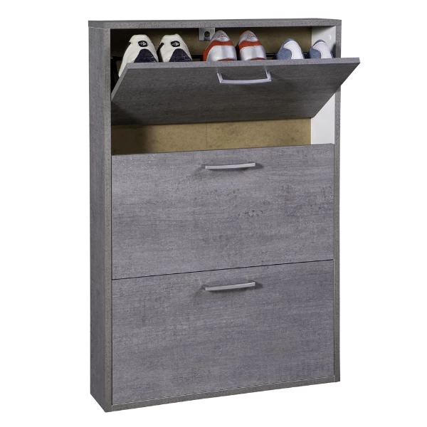 Schoenenkast Facto 65x15x99.6cm uit spaanplaat met afwerking in melamine in betonlook. Geschikt voor 6 à 9 paar schoenen.