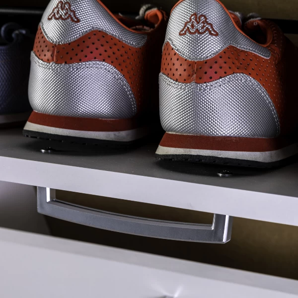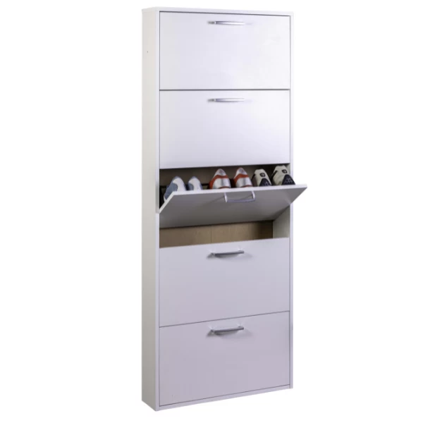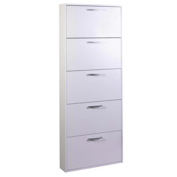 Schoenenkast Facto 65x15x164cm uit spaanplaat met afwerking in witte melamine. Geschikt voor 10 à 15 paar schoenen.