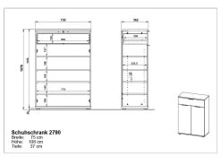 De Frodo-collectie van de Duitse meubelfabrikant Germania geeft een gezellige, warme uitstraling aan je inkomhal in eikdecor. Heldere vormen, discrete metalen handgrepen en een fijne parelstructuur geven de houten aanblik extra cachet. De schoenenkast is voorzien van een lade en twee deuren, waarachter zich vier legplanken bevinden. Drie daarvan zijn verstelbaar. Het meubel kan om en bij de 15 paar schoenen bergen.