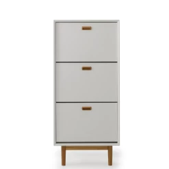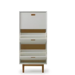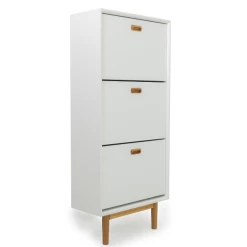 Schoenenkast Horanka gemaakt uit gelakt MDF en spaanplaat bestaat uit 3 opklapdeuren.