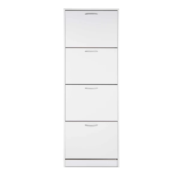 Schoenenkast Maicon uit spaanplaat in wit. Uitgerust met 4 opklapdeuren.