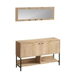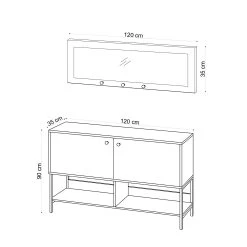 Schoenenkast Emerald is gemaakt van 100% gemelamineerd spaanplaat met een stevige dikte van 18 mm. Met een breedte van 120 cm, hoogte van 90 cm en diepte van 35 cm biedt het voldoende opbergruimte met talloze legplanken. De kast kan eenvoudig aan de muur worden bevestigd en wordt geleverd in een klassieke en stijlvolle kleur Sapphire Oak.