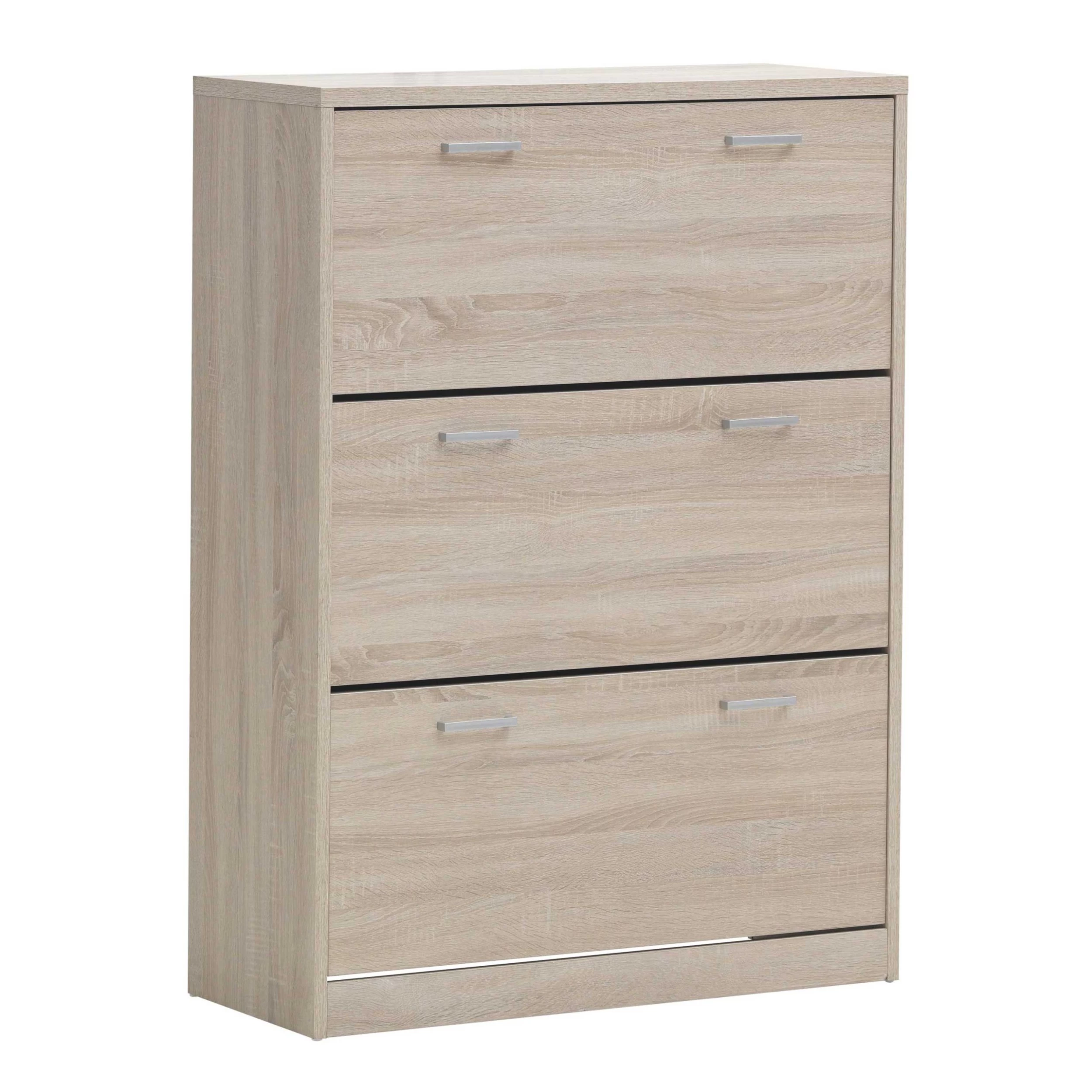 Organiseer jouw hal, gang of dressing met deze praktische schoenenkast van de Spacio-collectie. De schoenenkast is gemaakt van spaanplaat met een decor van sonoma eik. Je kan er tot 18 paar schoenen in opbergen.