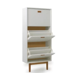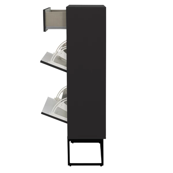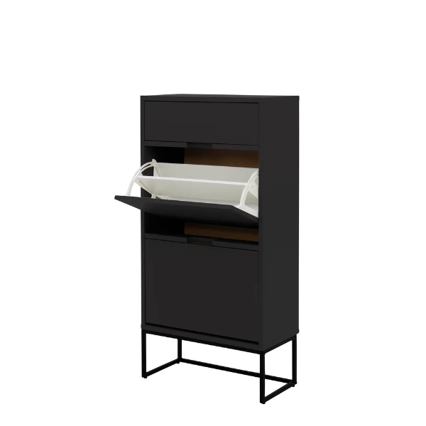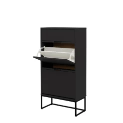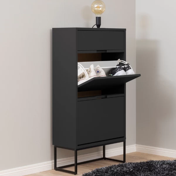 Schoenenkast Trend gemaakt uit gelakt MDF en spaanplaat bestaat uit 1 lade en 2 opklapdeuren.