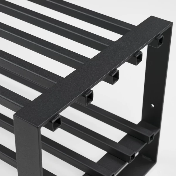 Dit stoer schoenenrek in zwart gepoedercoat staal is de perfecte aanvulling voor uw industriële hal. De 2 legplanken bieden plaats aan een 6-tal paar schoenen.
