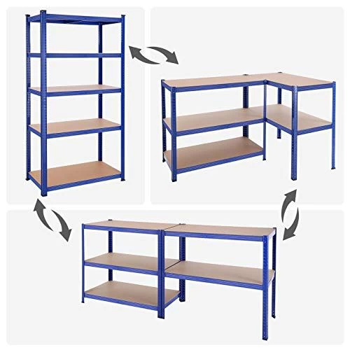 Stalen rekken voor zwaar gebruik, met anti-tip kit voor bevestiging aan de muur, deelbaar in 2 aparte eenheden, verstelbare legplanken om de 5 cm, grote afmetingen en capaciteit, eenvoudige montage zonder gereedschap