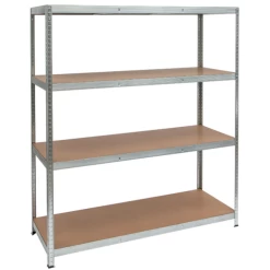 Dankzij stellingkast Heavy Duty kom je nooit meer plaats tekort in de bergruimte. Je kan dit rek snel en eenvoudig monteren (boutloos). Het rek bestaat uit verzinkte profielen en 4 legborden in MDF, die elk 250 kg kunnen dragen. Totaal draagbare gewicht: 1000 kg.
