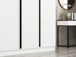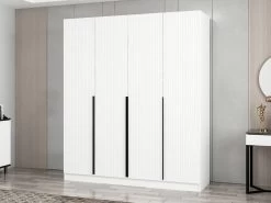 De kast wordt geleverd in een strakke witte kleur, die een vleugje elegantie toevoegt aan je slaapkamer of kleedruimte. De witte kleur maakt het ook gemakkelijk om te matchen met elk bestaand decor en meubilair.