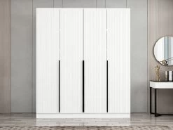 De kast wordt geleverd in een strakke witte kleur, die een vleugje elegantie toevoegt aan je slaapkamer of kleedruimte. De witte kleur maakt het ook gemakkelijk om te matchen met elk bestaand decor en meubilair.