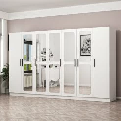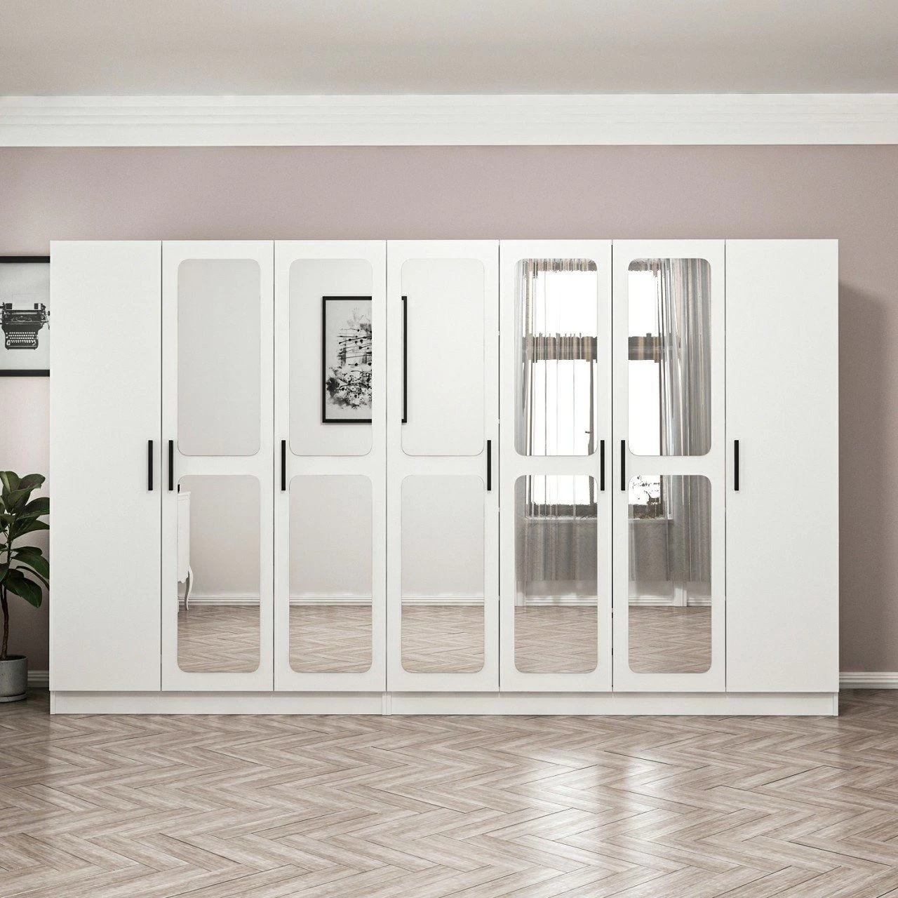 Met een breedte van 315 cm, een hoogte van 190 cm en een diepte van 52 cm biedt deze kledingkast voldoende ruimte om je kleding en accessoires netjes op te bergen. De royale afmetingen bieden genoeg ruimte voor al je spullen, zodat je je kamer rommelvrij kunt houden.