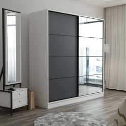 De kleur van de kast, een stijlvolle combinatie van wit en antraciet, voegt een vleugje elegantie en verfijning toe aan elke slaapkamerinrichting. Of je stijl nu eigentijds of traditioneel is, de Woody Fashion Kledingkast sluit naadloos aan en verbetert de algehele esthetiek van je ruimte.