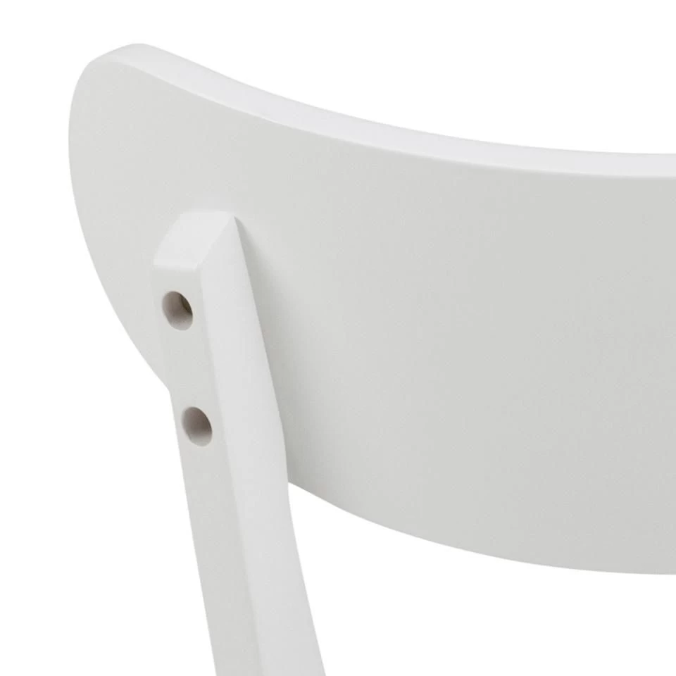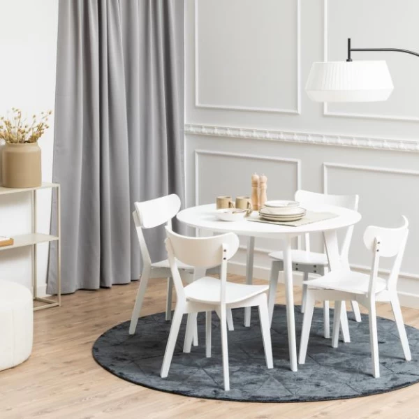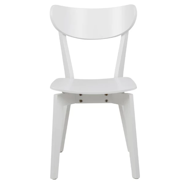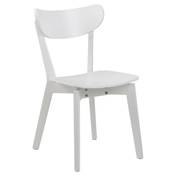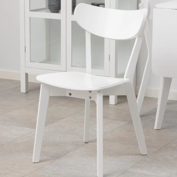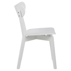 Eetkamerstoel Rover, met basis in rubberhout en afwerking uit MDF in mat wit.ย