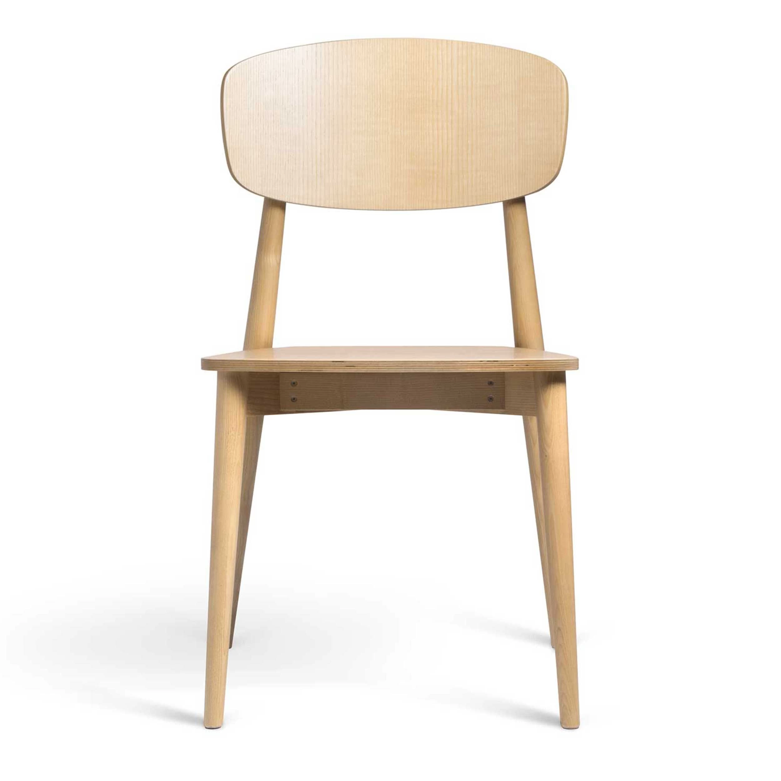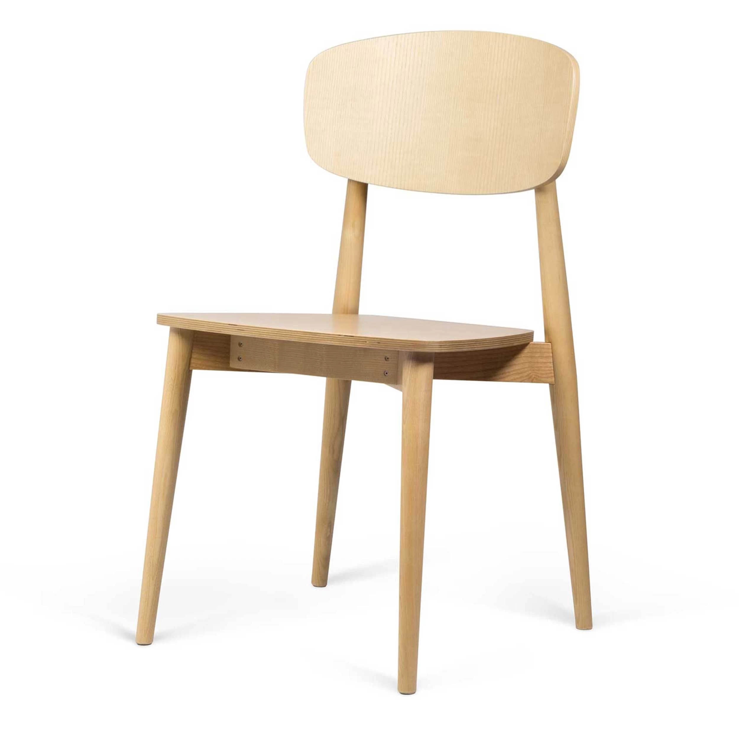 Stoel Sally van massief es, afgewerkt met een laagje eikfineer.