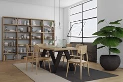 Deze stoel dankt haar moderne look aan haar afwerking in eikfineer en kan