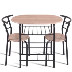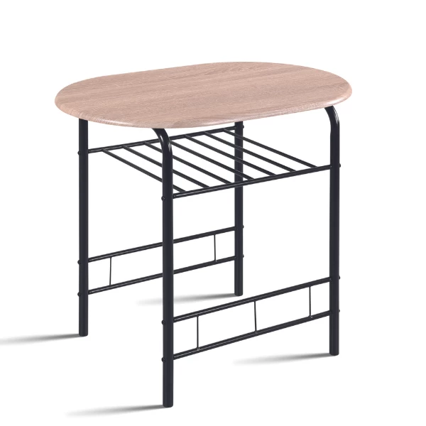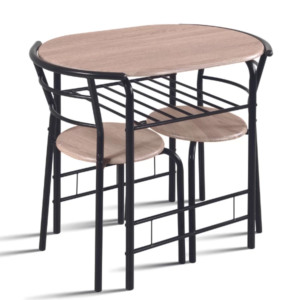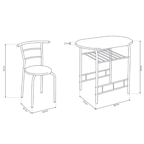 Tafel met 2 stoelen Ada gemaakt uit spaanplaat met sonoma eikdecor en zwart metaal. De afmetingen van de tafel zijn 80x53x74 cm en van de stoelen 49x41x74 cm.ย