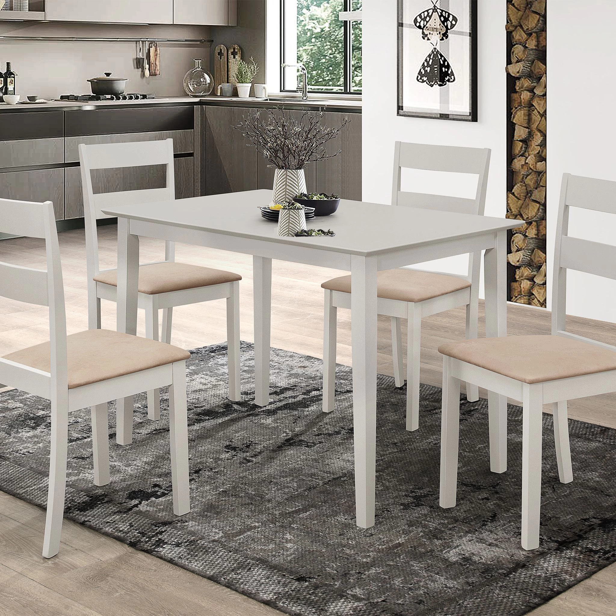 Keukentafel met 4 stoelen Damir. Kleur: lichtgrijs.