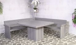 De bank is vervaardigd uit hoogwaardige old teak van topkwaliteit en werd behandeld zodat deze niet onderhevig is aan wisselende weersomstandigheden. De gerecycleerde teak geeft deze tafel een zeer mooie, verouderde look. Combineer met de bijhorende tuintafel en uitgebreid dineren in de buitenlucht was nog nooit zo zalig.