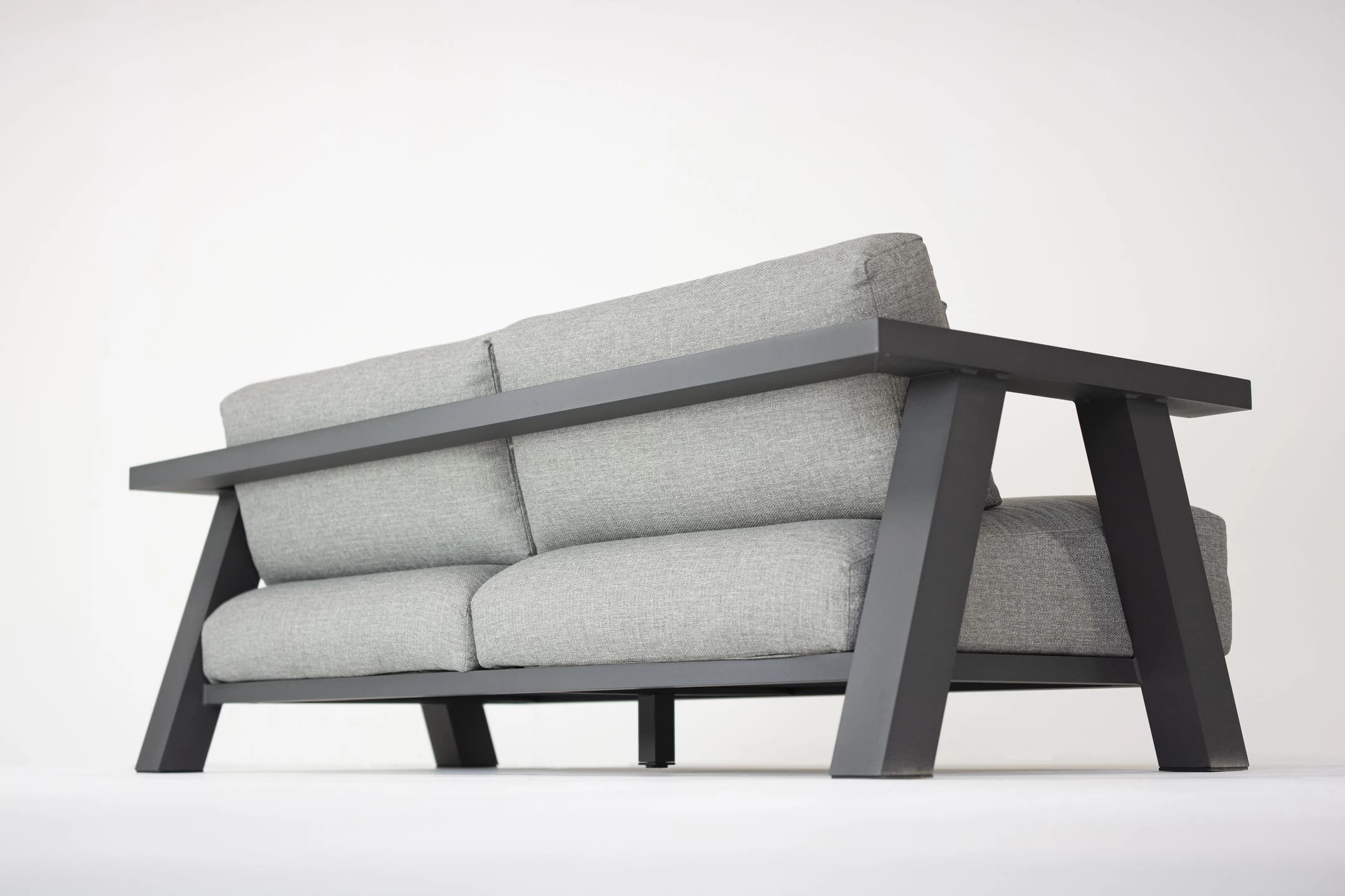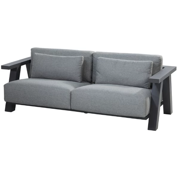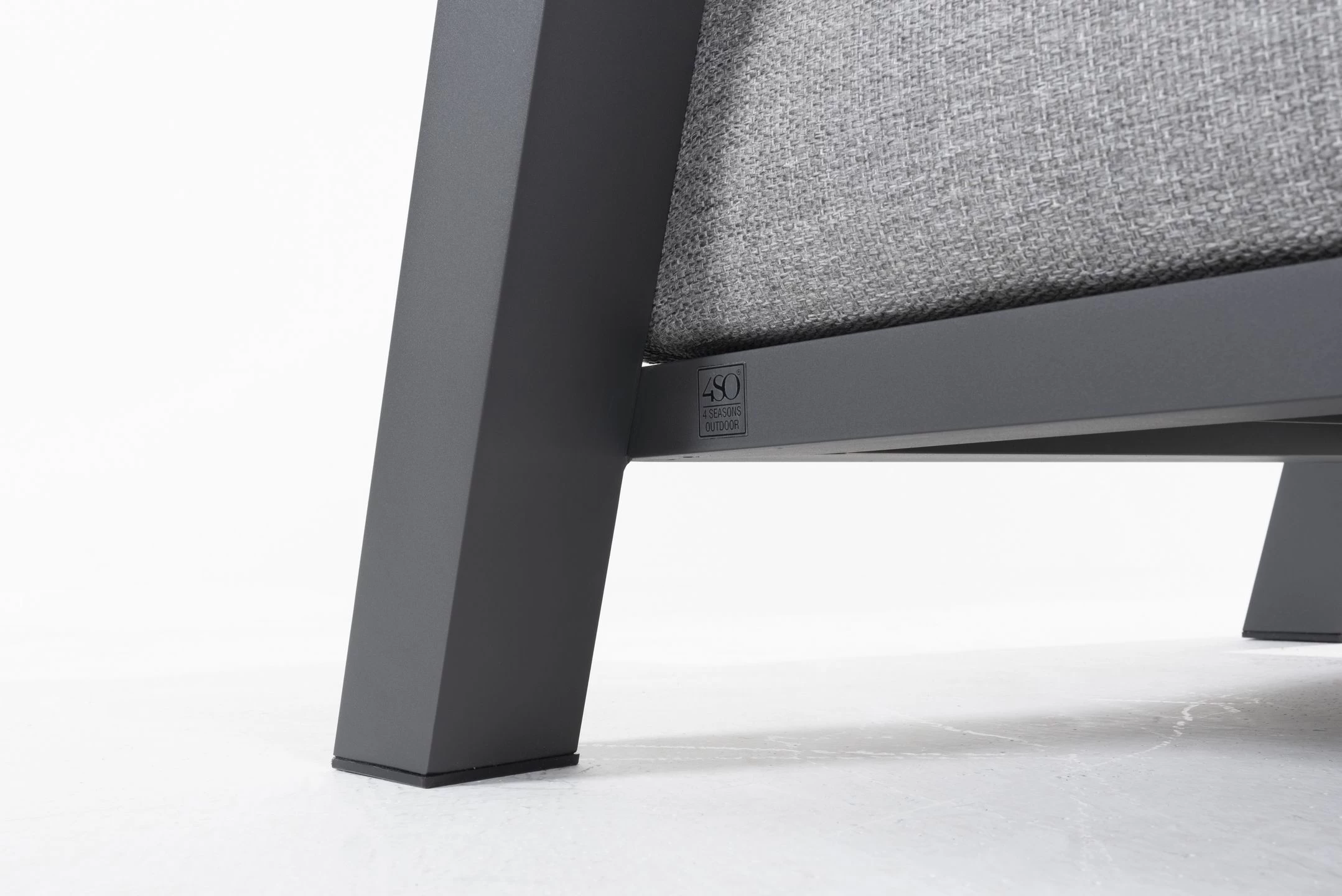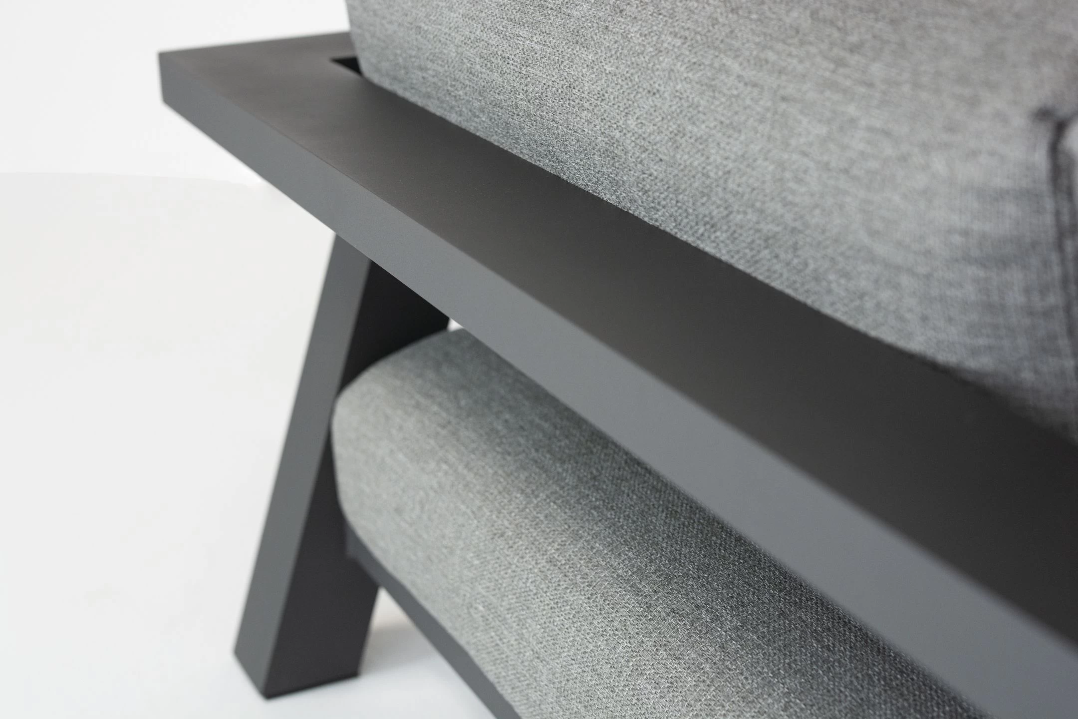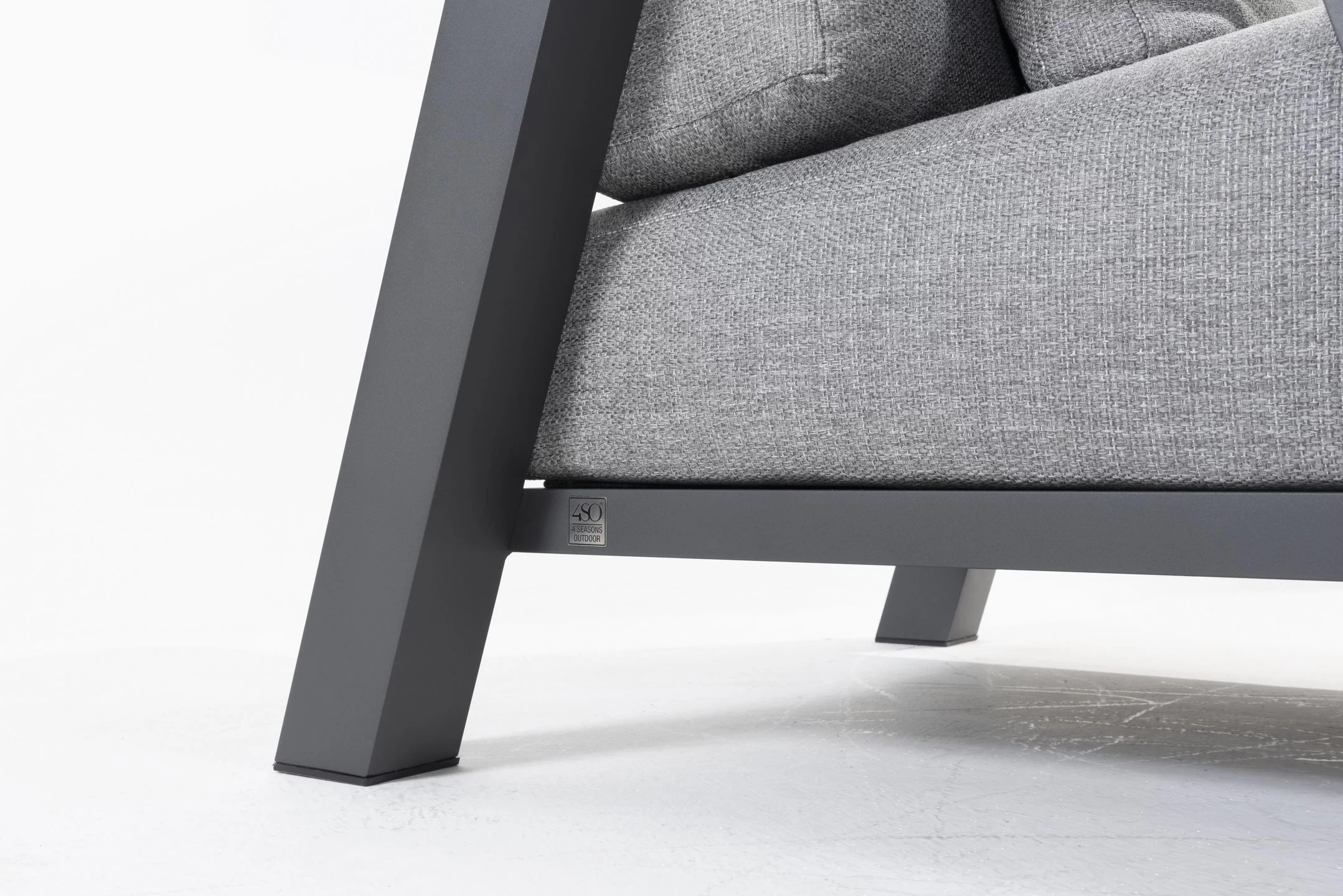 Tuinbank Iclyn gemaakt uit aluminium in het antraciet met grijze kussens uit Olefin.