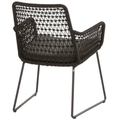 De comfortabele stoelen van de Atina-collectie vormen een echte eyecatcher in je tuin. Met hun sierlijke sledepoten uit RVS en rugleuning uit antracietkleurige touw, stralen deze stoelen een mengeling van de landelijke en moderne stijl uit. Deze stoelen zijn volledig bestendig tegen alle weersomstandigheden en worden enkel per twee verkocht.