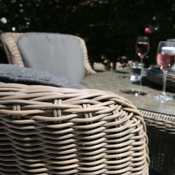 Tuinstoel Brighton Pure uit Hularu wicker. Met grijze kussens.