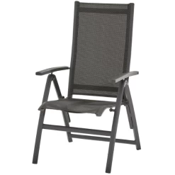 Tuinstoel Cady met verstelbare rugleuning. Gemaakt uit aluminium met een zitting en rugleuning in textileen.ย