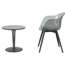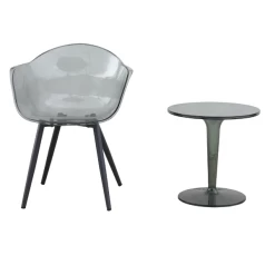Wanneer je slechts over een klein terras beschikt, kies je beter niet voor donkere, maar voor lichte, transparante tuinmeubels .Transparante meubels, laten licht door, waardoor de ruimte eromheen automatisch groter lijkt. Tuinstoel Caro heeft een kuip gemaakt uit transparant polypropyleen en poten uit gepoedercoat metaal. Deze stoel is onderhoudsvriendelijk, stevig en waterbestendig. Op onze website kun je ook een bijpassende tafel voor deze stoel vinden.