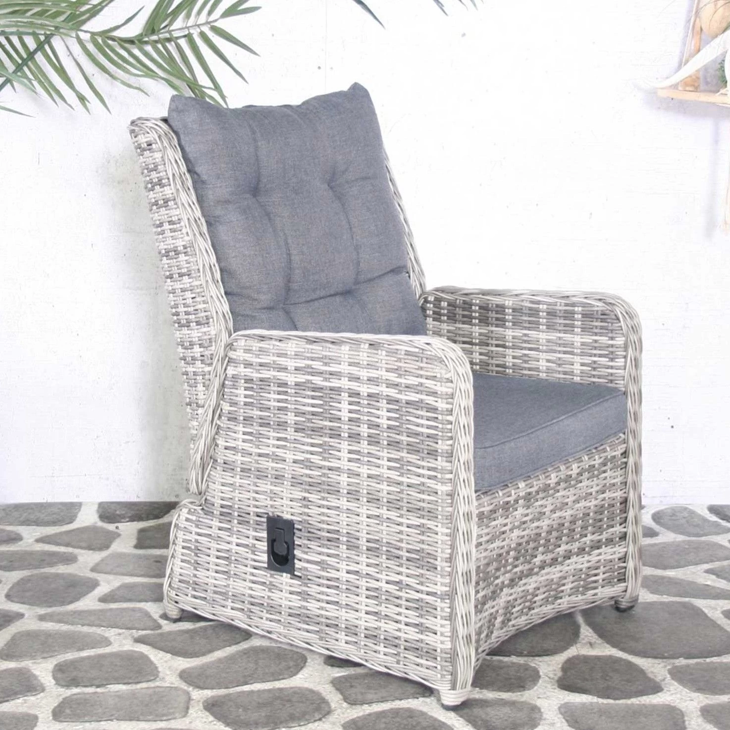 Deze comfortabele tuinstoel Clark is voorzien van een aluminium frame en weersbestendige wickerbekleding. Dankzij haar eerder klassieke look slaag je er vast en zeker in om op je terras een gemoedelijke, huiselijke sfeer te scheppen. Je vindt in onze webshop zeker een bijpassende tuintafel, aangezien we heel wat verschillende vormen en stijlen in de aanbieding hebben. De stoel is uitgerust met comfortabele, waterresistente zitkussens in polyester.