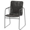 Tuinstoel Filippo uit roestvrij staal met een zitting in touw. De stoelen zijn stapelbaar.