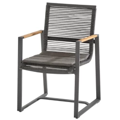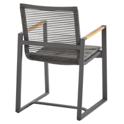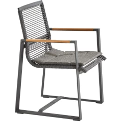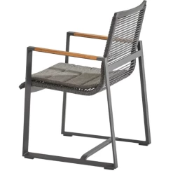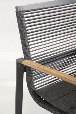 Tuinstoel Pando gemaakt uit aluminium en touw, met armleuningen uit teakhout. Per 2 verkocht.