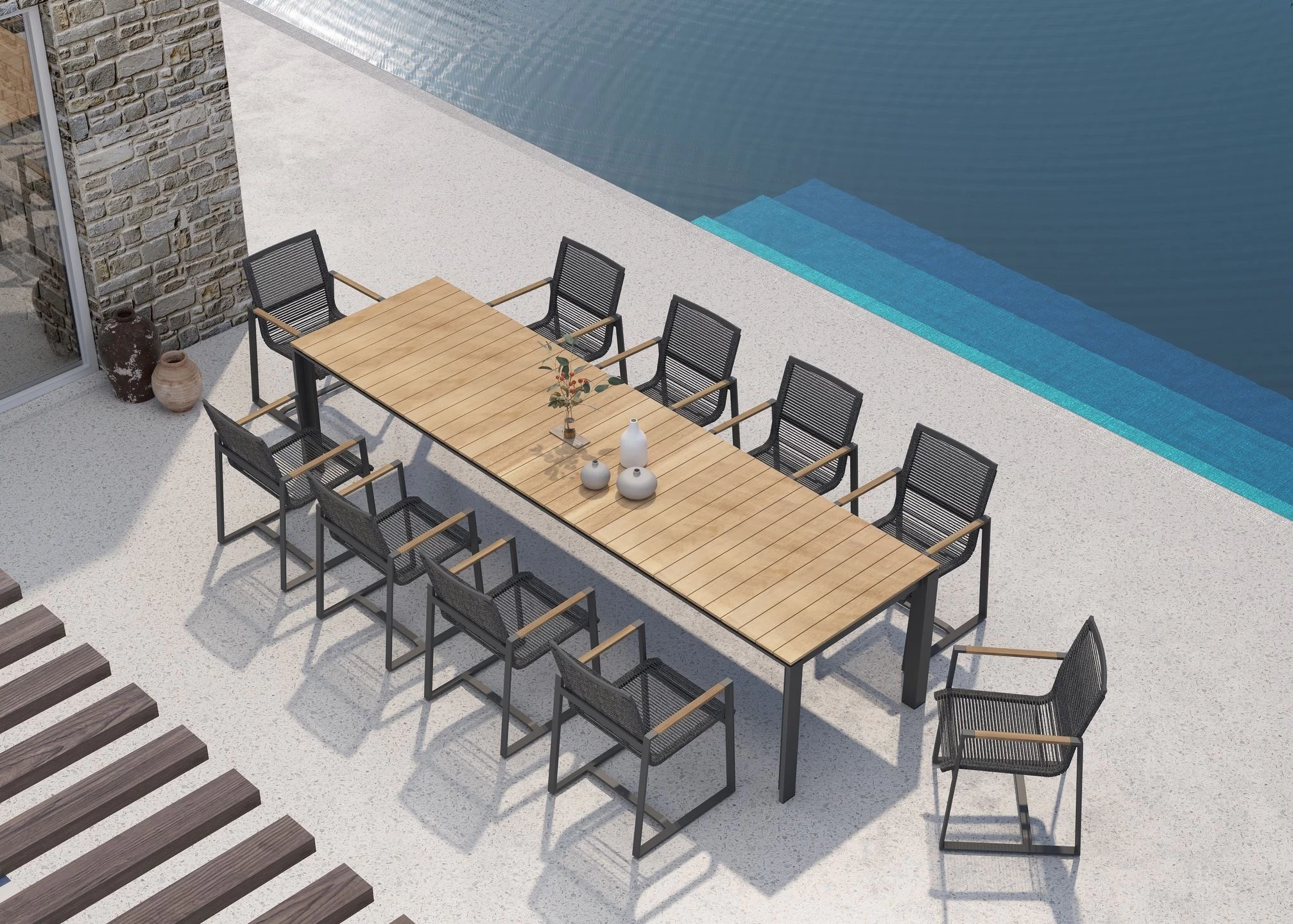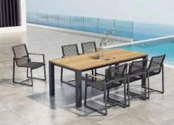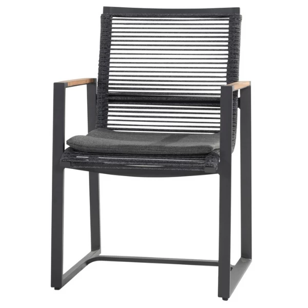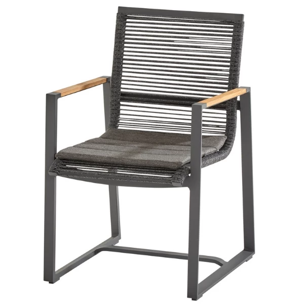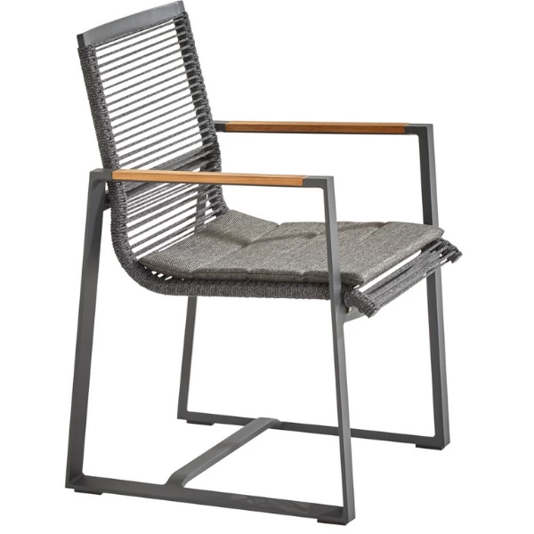 Eenvoudig maar toch stevig, daarvoor staat deze Pando tuinstoel. Het frame is gemaakt uit aluminium, een zeer geschikt materiaal voor buiten. De comfortabele zitting en rugleuning zijn gemaakt uit touw. Je kan erop rekenen dat deze stoel gemakkelijk zit, want het touw past zich aan jouw lichaam aan. Afgewerkt met teakhout aan de armleuning, is deze stoel een elegante touch voor aan je tuintafel.