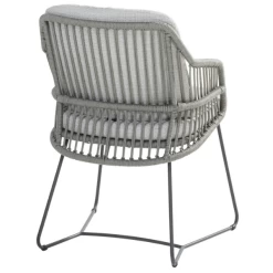 Tuinstoel Seminole, gemaakt uit RVS en touw met een rug- en zitkussen uit Olefin. De stoelen worden verkocht per 2.