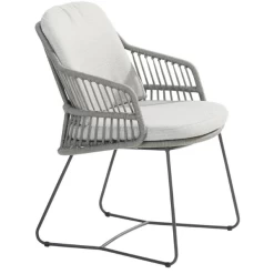 Tuinstoel Seminole, gemaakt uit RVS en touw met een rug- en zitkussen uit Olefin. De stoelen worden verkocht per 2.