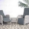 De Yolande tuinstoel heeft een rugleuning en zitting in lichtgrijs textileen, een weerbestendig materiaal. De poten van de stoel zijn uit mat aluminium en hebben een witte kleur. De stoel is bovendien stapelbaar.