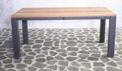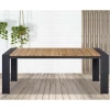 Tuintafel Bizon, 180×90 cm, met aluminium poten en tafelblad uit teak. Geschikt voor 4 tot 6 personen.