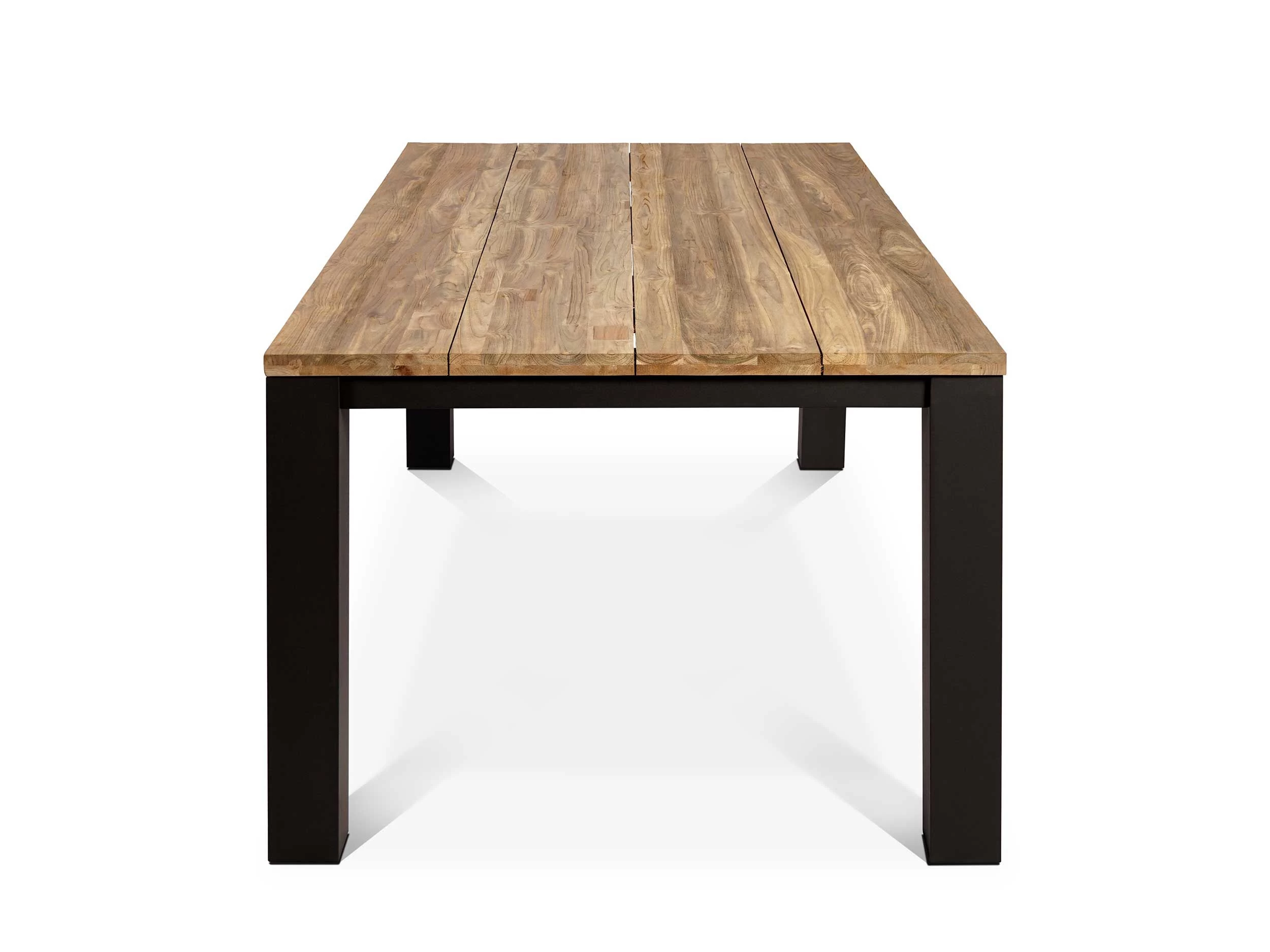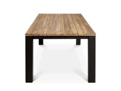 Tuintafel Bizon, 240×100 cm, met aluminium poten en tafelblad uit teak. Geschikt voor 10 personen.