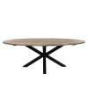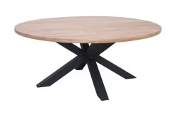 Ronde tuintafel Feliz met een diameter van 180 cm. Met zwarte kruispoot en blad uit teak.