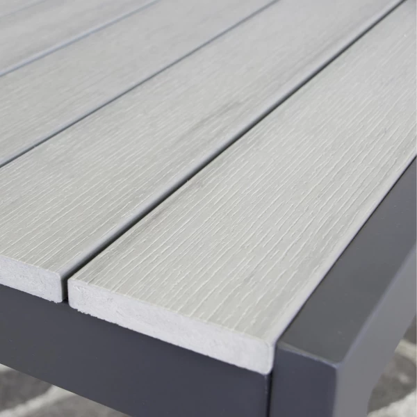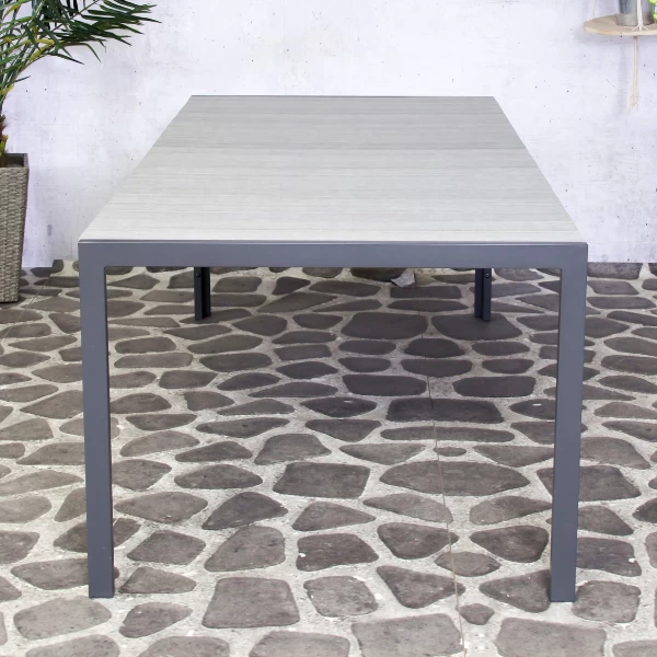 Aluminium tuintafel Jersey met grijs tafelblad van polywood, 220×100 cm.