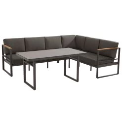 Tuintafel Montenegro, gemaakt uit een onderstel van aluminium met een tafelblad uit spraystone. Meet 150 cm lang, 80 cm breed en 74 cm hoog.