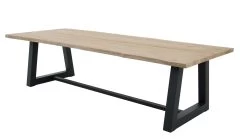 Tuintafel Simeon met zwarte aluminium poten en boomstam tafelblad uit teak. Geschikt voor 12 personen.