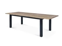Maak je tuin compleet met de prachtige tuintafel in de industriële stijl. De Dalore tuintafel is verlengbaar van 200 cm tot 260 cm, en is geschikt voor acht personen. Deze robuuste tuintafel is volledig gemaakt uit een onderstel van matzwarte aluminium en een tafelblad uit teakhout en is heel stevig. Nodig een aantal vrienden uit voor een gezellige barbecue aan jouw nieuwe tuintafel.