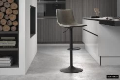 Heb je er al eens over nagedacht om je keukentafel en -stoelen te vervangen door een barset? Je bespaart er namelijk ruimte mee en het is ook nog eens erg hip! Deze Fontana-barstoel is verstelbaar in hoogte, waardoor hij perfect onder elke bartafel zal passen. De barstoel is bekleed met grijs kunstleer en heeft een metalen poot met een voetsteun.