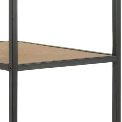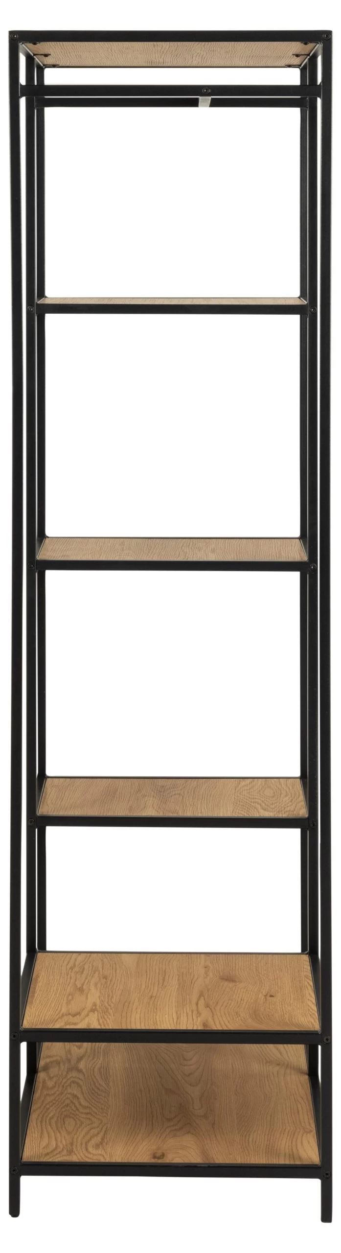 Vestiaire Dover, uitgerust met vier legplanken en één kledingroede. Gemaakt uit zwart gepoedercoat metaal met legplanken uit wilde eik decor.