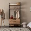 De kledingkast van zorgvuldig geselecteerde materialen is gemakkelijk te onderhouden. Met exclusieve designrechten is deze kast het perfecte accent om een kamer met stijl af te maken. De kast heeft een opvallend wilde eik decor en wordt ondersteund door een metalen onderstel met een poedercoating.