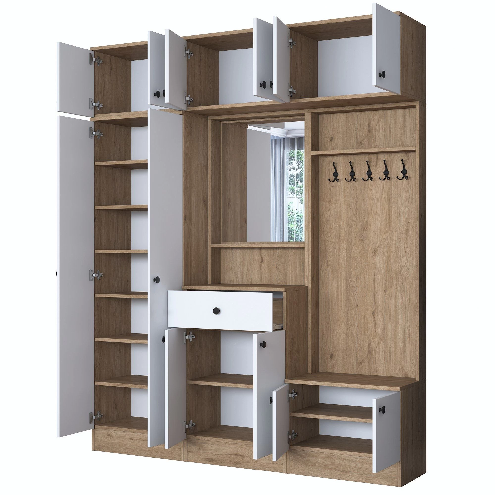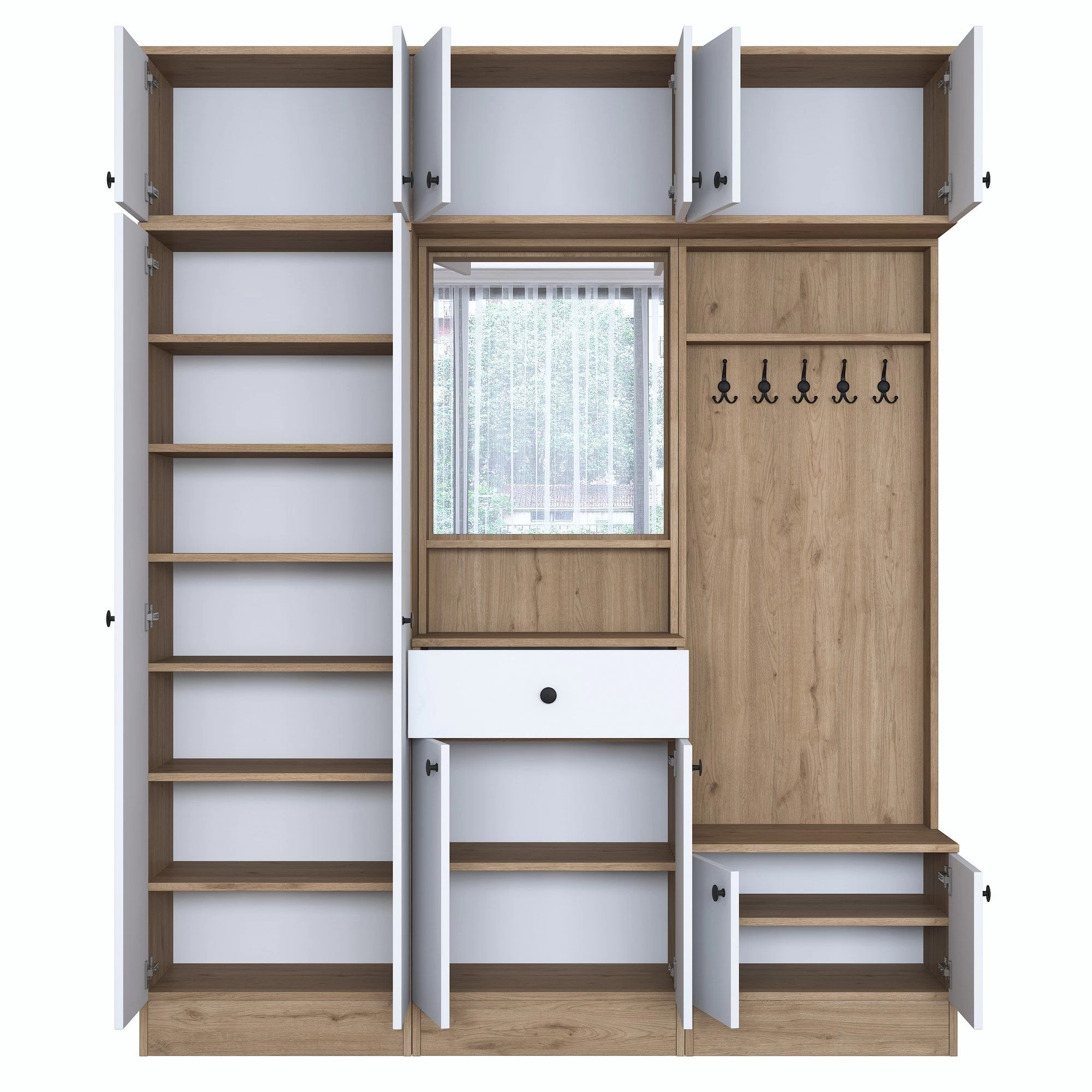 De standaard heeft een royale breedte van 179 mm, waardoor er voldoende ruimte is om je jassen, hoeden, sjaals en andere accessoires op te bergen. De walnoot witte kleur voegt een vleugje elegantie toe en past naadloos in elk interieur. Of je nu een moderne of traditionele stijl hebt, de Locelso kapstok zal moeiteloos de esthetiek van je huis verbeteren.