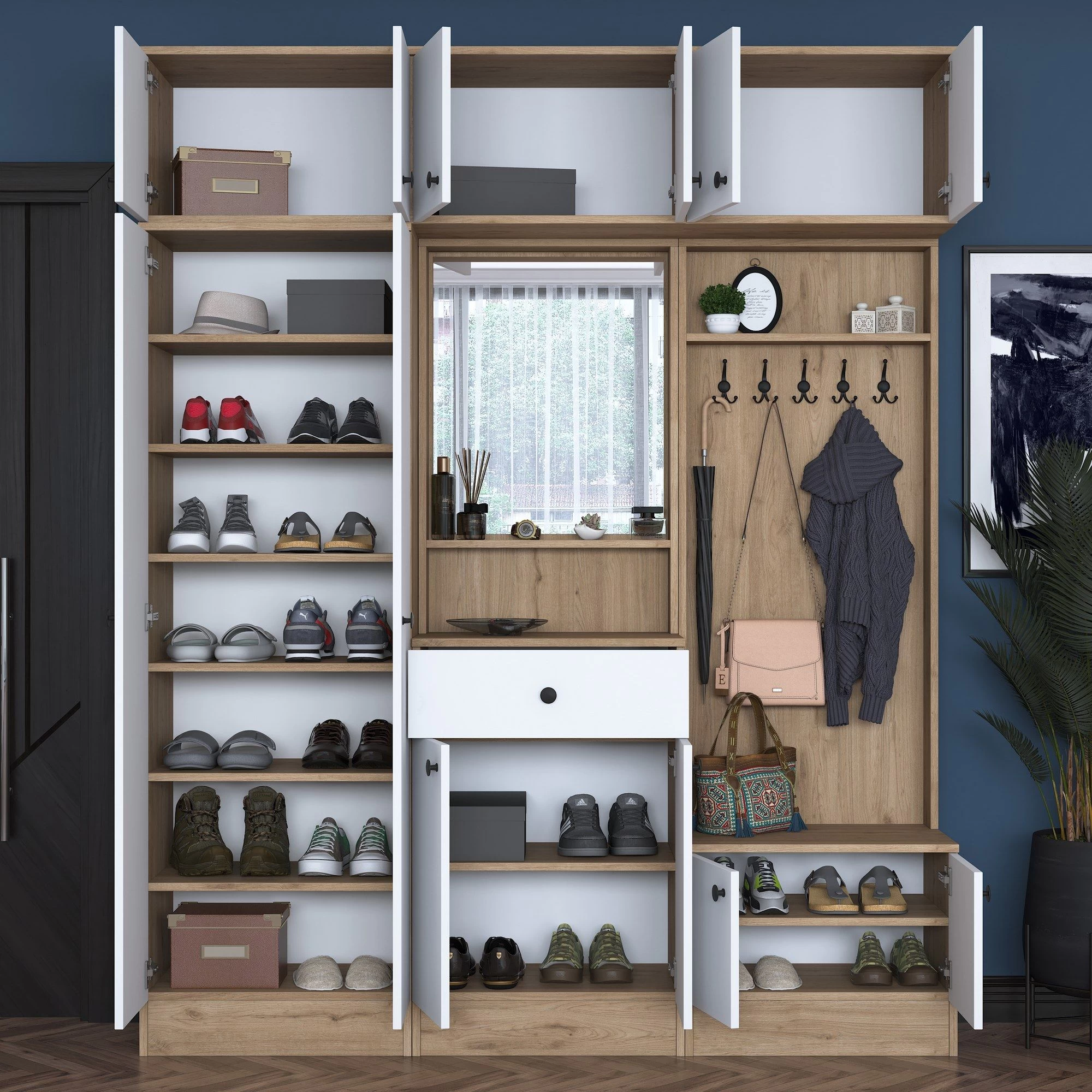 Verfraai je hal met de Locelso halstandaard en geniet van het stijlvolle ontwerp, de ruime opslagcapaciteit en de duurzame constructie. Zeg vaarwel tegen rommel en verwelkom een gestroomlijnde en georganiseerde ruimte. Met zijn walnoot witte kleur en veelzijdige functies is deze standaard de perfecte aanvulling voor elk huis.