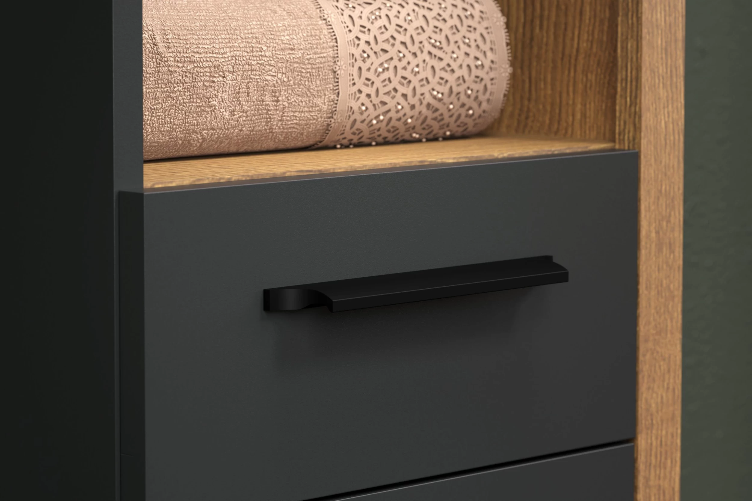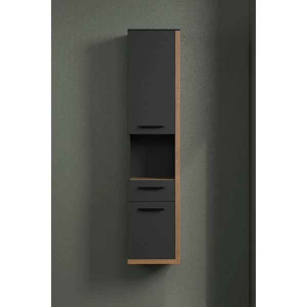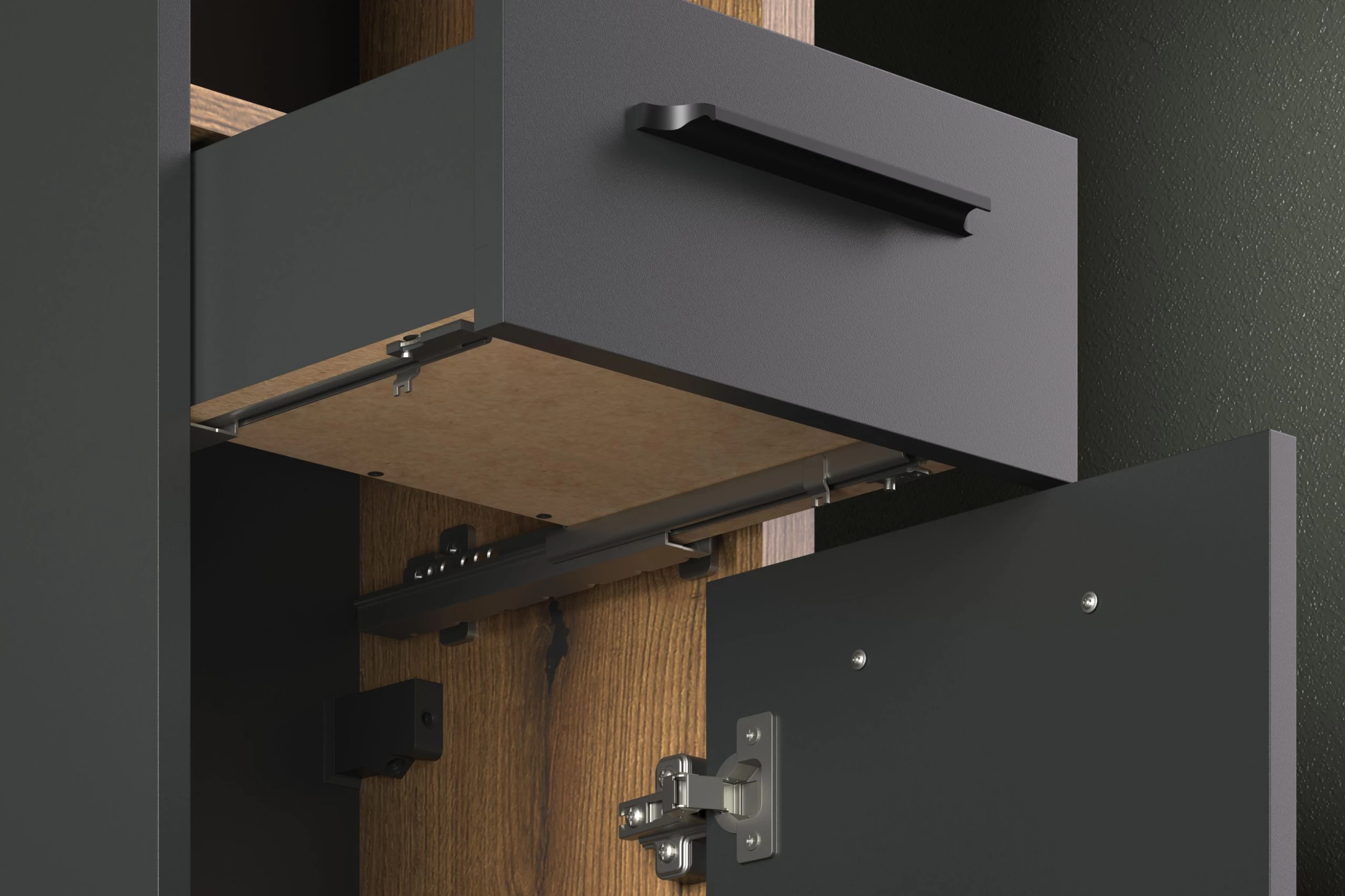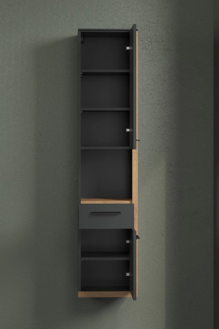 Transformeer je interieur met onze wandkast uit de Synnax-serie, een perfecte mix van stijl en opslag. Met twee deuren, een handige lade en een eigentijds eiken en anthraciet-kleurencombinatie, biedt deze kast niet alleen praktische opslag, maar voegt ook een vleugje design toe aan je ruimte.
