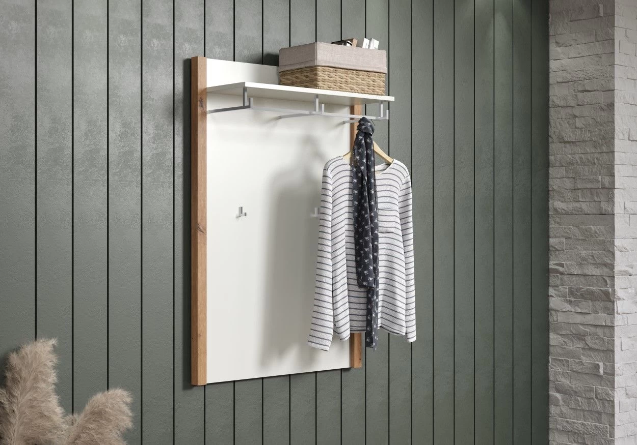 Transformeer je interieur met ons prachtige wandpaneel uit de Dakota-serie. Dit verfijnde paneel van 78 centimeter in lengte, 26 centimeter in diepte en 114 centimeter in hoogte voegt niet alleen een vleugje elegantie toe, maar biedt ook praktische oplossingen voor opslag en decoratie. Met twee handige haken en een ruime plank is dit paneel ideaal voor het organiseren van sleutels, jassen, hoeden en decoratieve items.