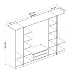 Met een breedte van 270 cm, een hoogte van 190 cm en een diepte van 52 cm biedt deze kledingkast voldoende ruimte om al je spullen georganiseerd op te bergen. Of je nu een grote collectie kleding, accessoires of andere benodigdheden hebt, deze kledingkast is er voor jou.
